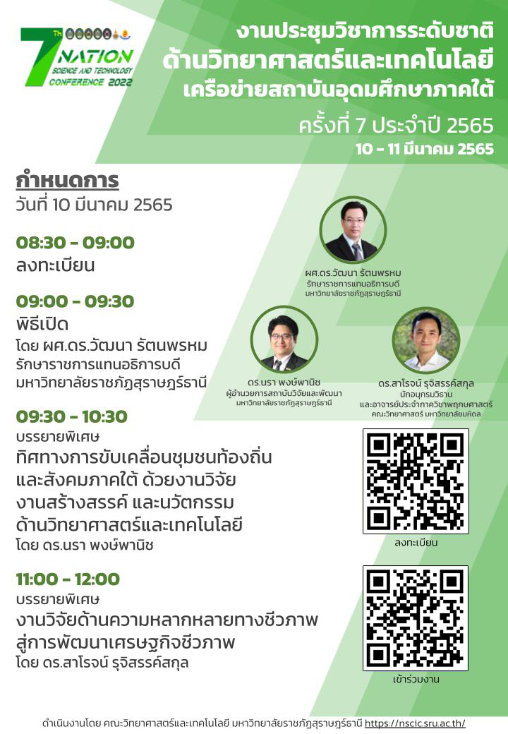 | ข่าวประกาศที่ 2 แจ้งช่องทางการรับชมการถ่ายทอดสดการประชุมวิชาการระดับชาติด้านวิทยาศาสตร์และเทคโนโลยีเครือข่ายภาคใต้ |