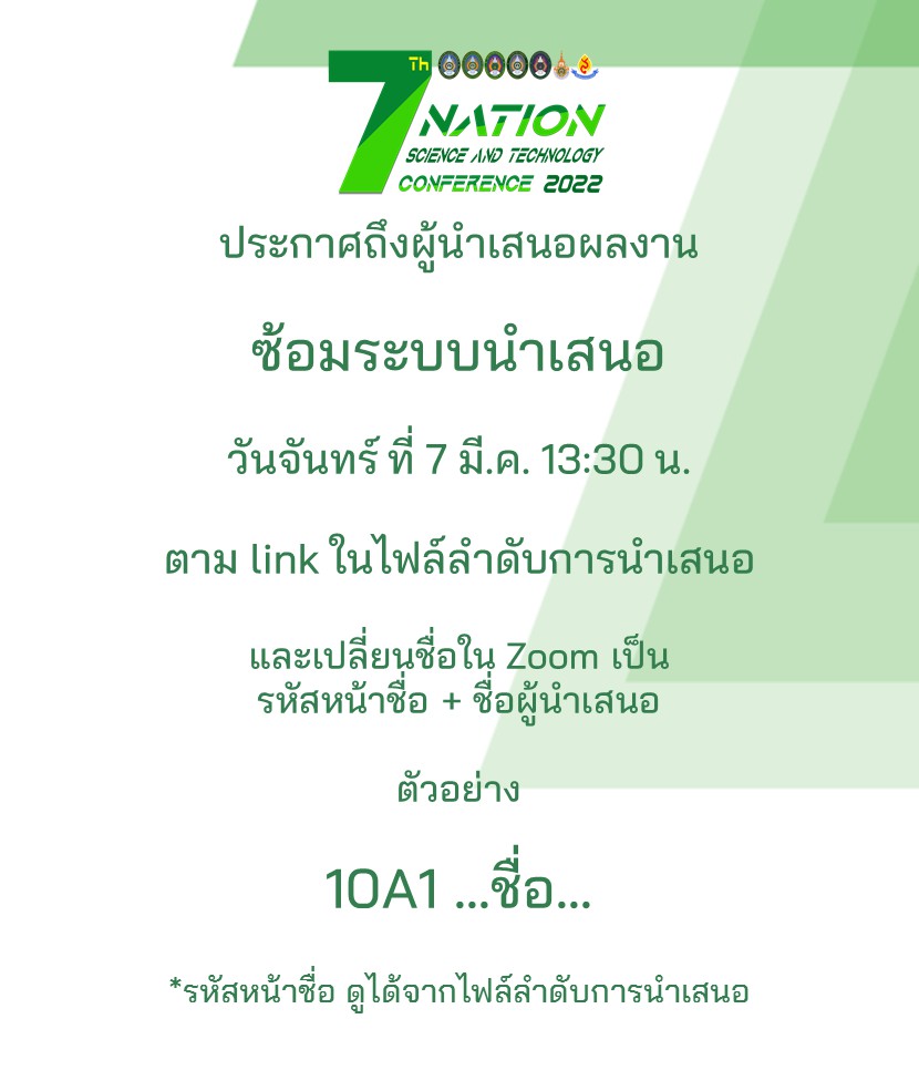 | ข่าวประกาศที่ 3 แจ้งข้อมูลลำดับการนำเสนอผลงาน และเล่ม Proceeding ฉบับ Pre-print สำหรับผู้เข้าร่วมงานใช้ประกอบการฟังการนำเสนอ |